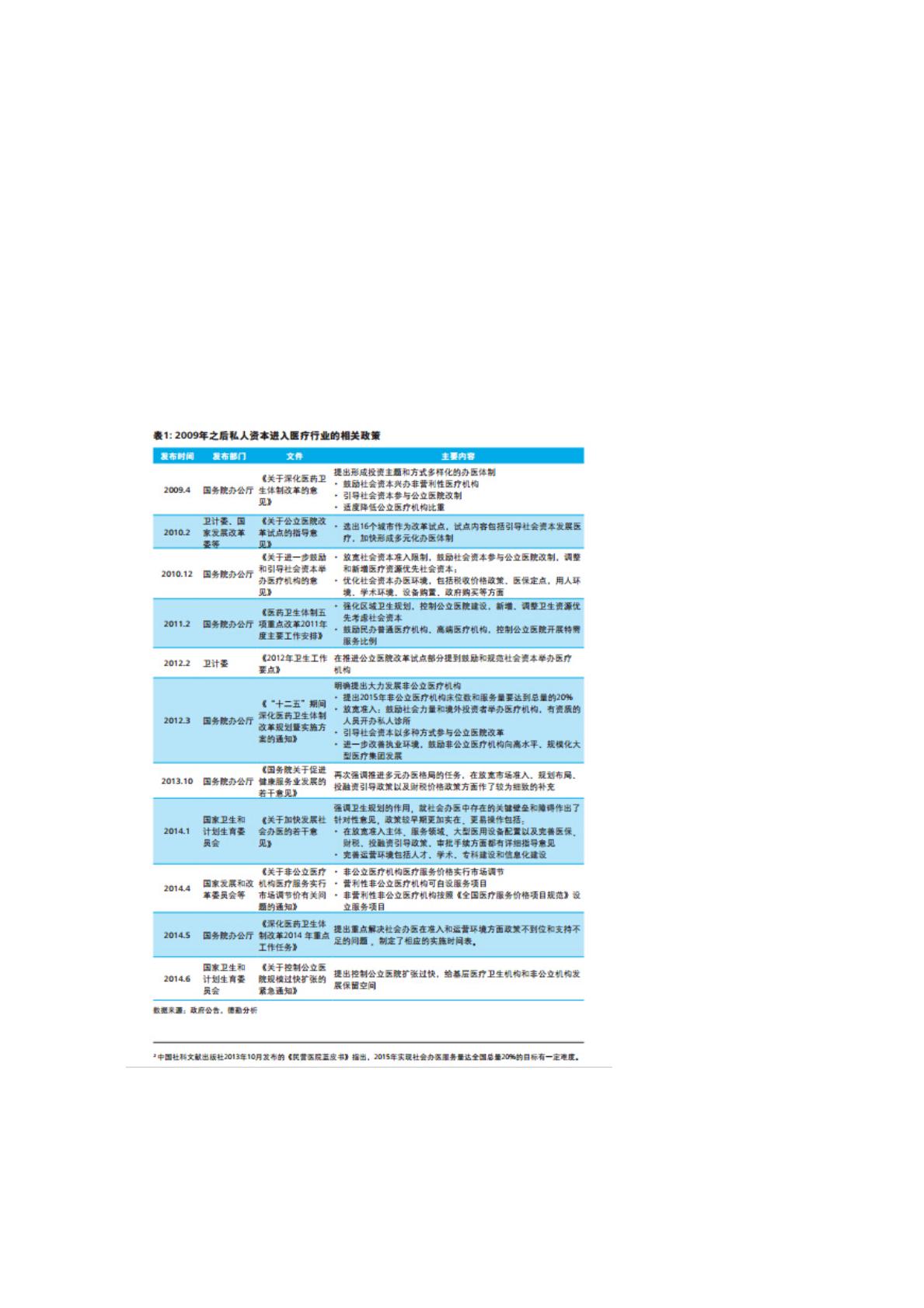 2015年非公立医疗机构床位数和服务量要达到总量的20%2,同时配套政策在放宽社会资