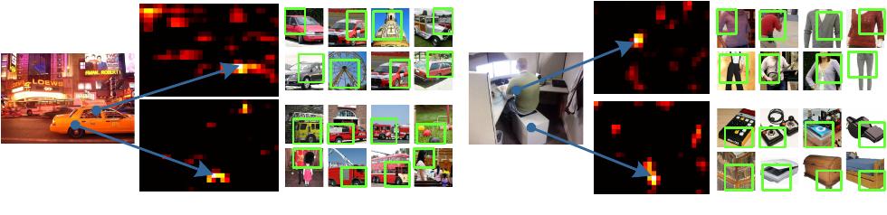 (c) The ImageNet images that have the strongest responses of the corresponding filters. The green rectangles