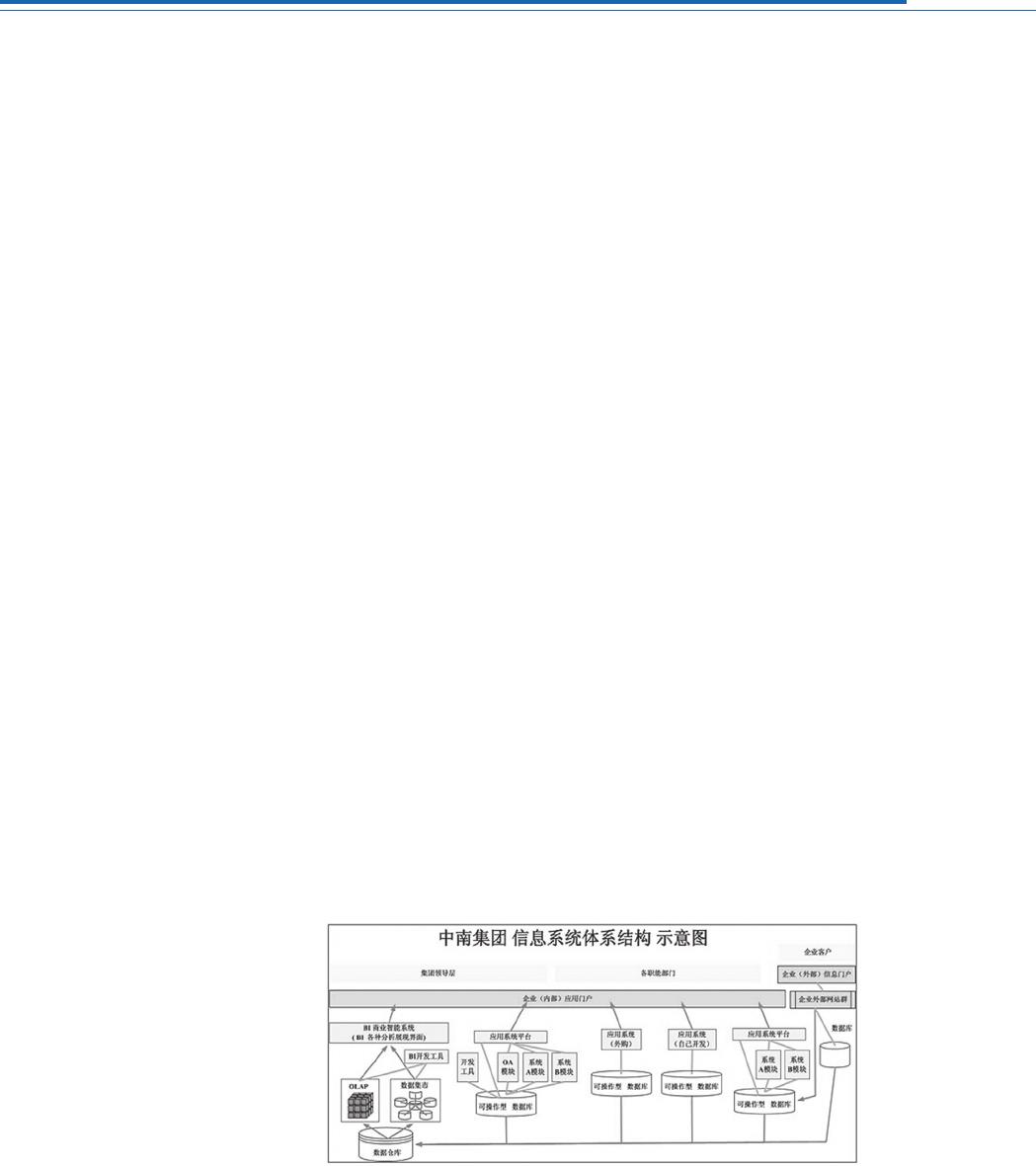 平台;以“数据仓库”和“BI 商业智能系统”作为数据汇总和分析的工具,它们共同构成了中南集团的“信息系统