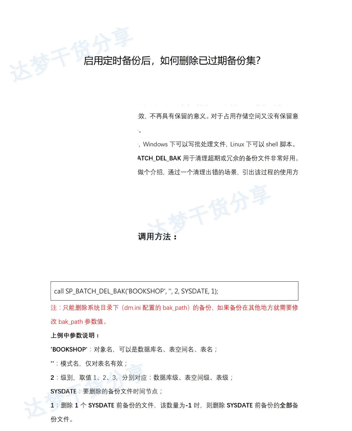 DM7 本身提供的系统过程 SP_BATCH_DEL_BAK 用于清理超期或冗余的备份文件非常好用。