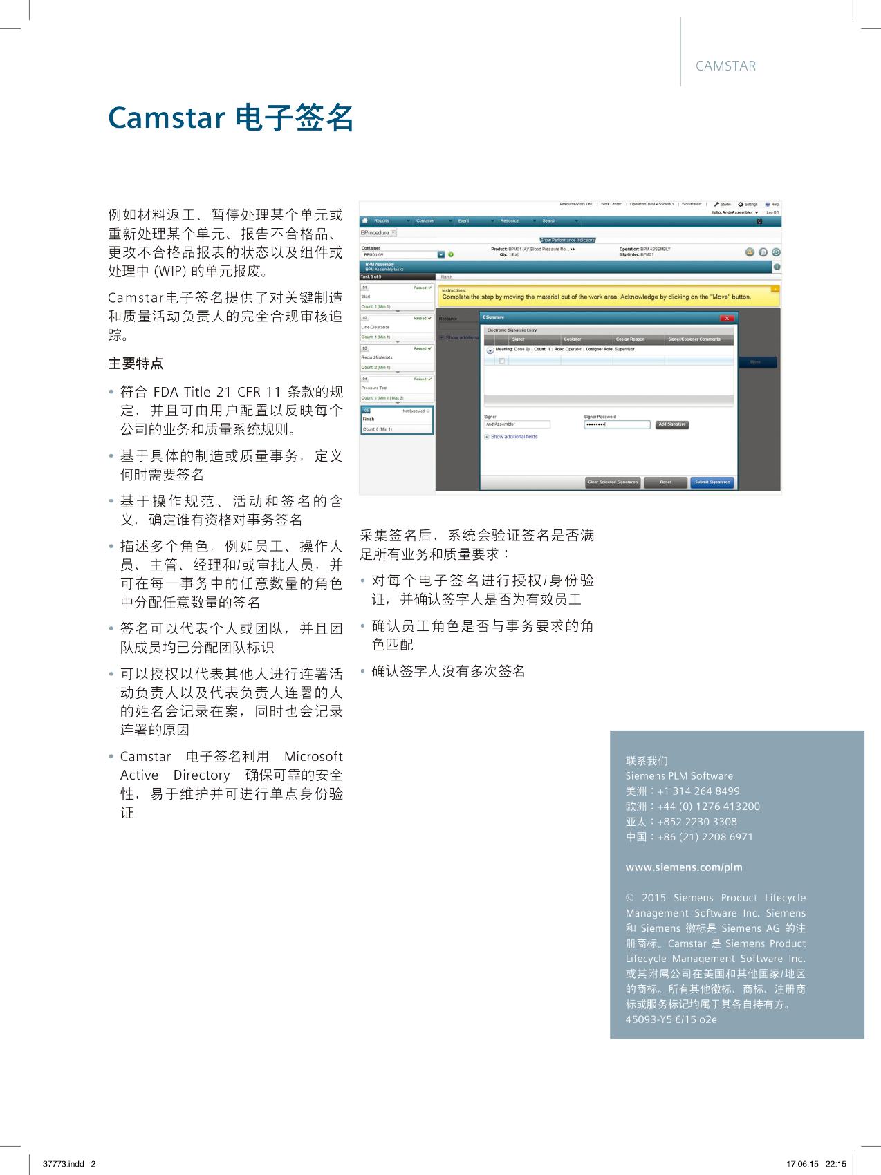 Camstar™ 电子签名软件完全符合 FDA