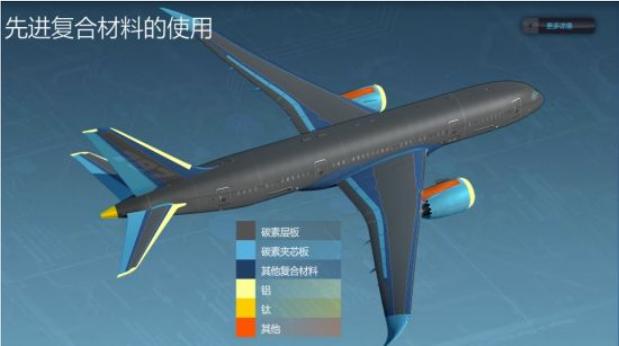 构,例如波音787和空客A350,机体结构已大量采用复合材料来降低飞机自身的
