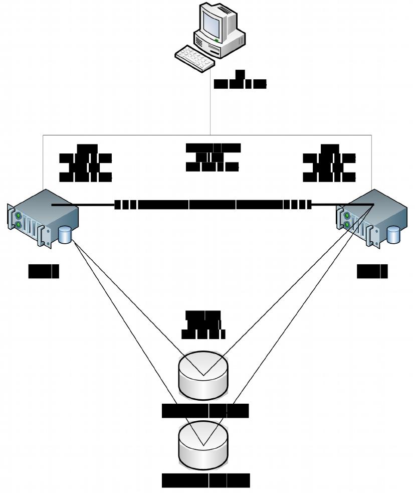 ,它们各有两条网线分别用于公共服务和内部互联;群集使用的共享存储