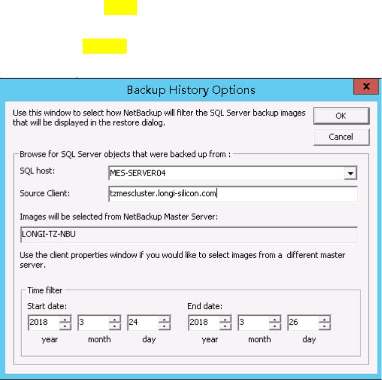 修改黄色标注的位置,指定数据库恢复的位置和名称