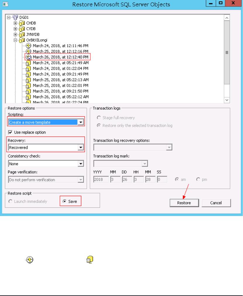 选择需要恢复的备份集,并按上图勾选相应选项,点击“