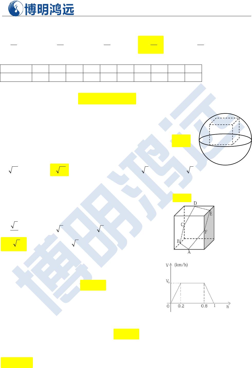 9、如图,正方体位于半径为 3 的球体,且一面位于球的大圆上,