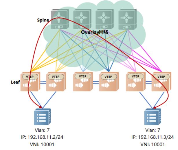 分配的原因经常分配在不同的 Leaf 交换机下,因此需要实现跨 Leaf 的 L2 流量互通。