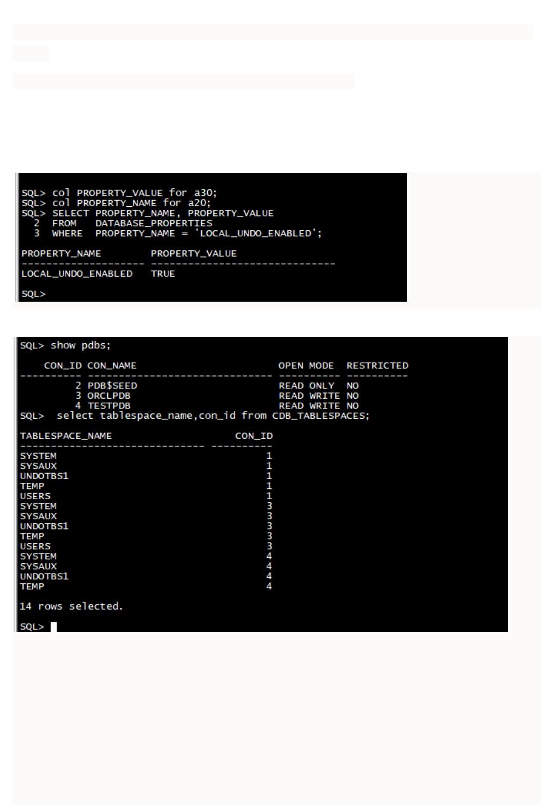 在CDB中每个容器的静态数据字典视图和动态性能(V $)视图中都可以看到撤消表空间。