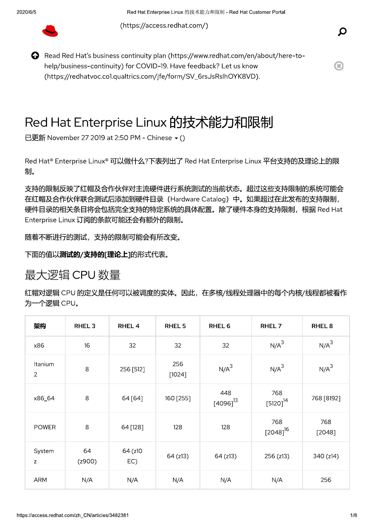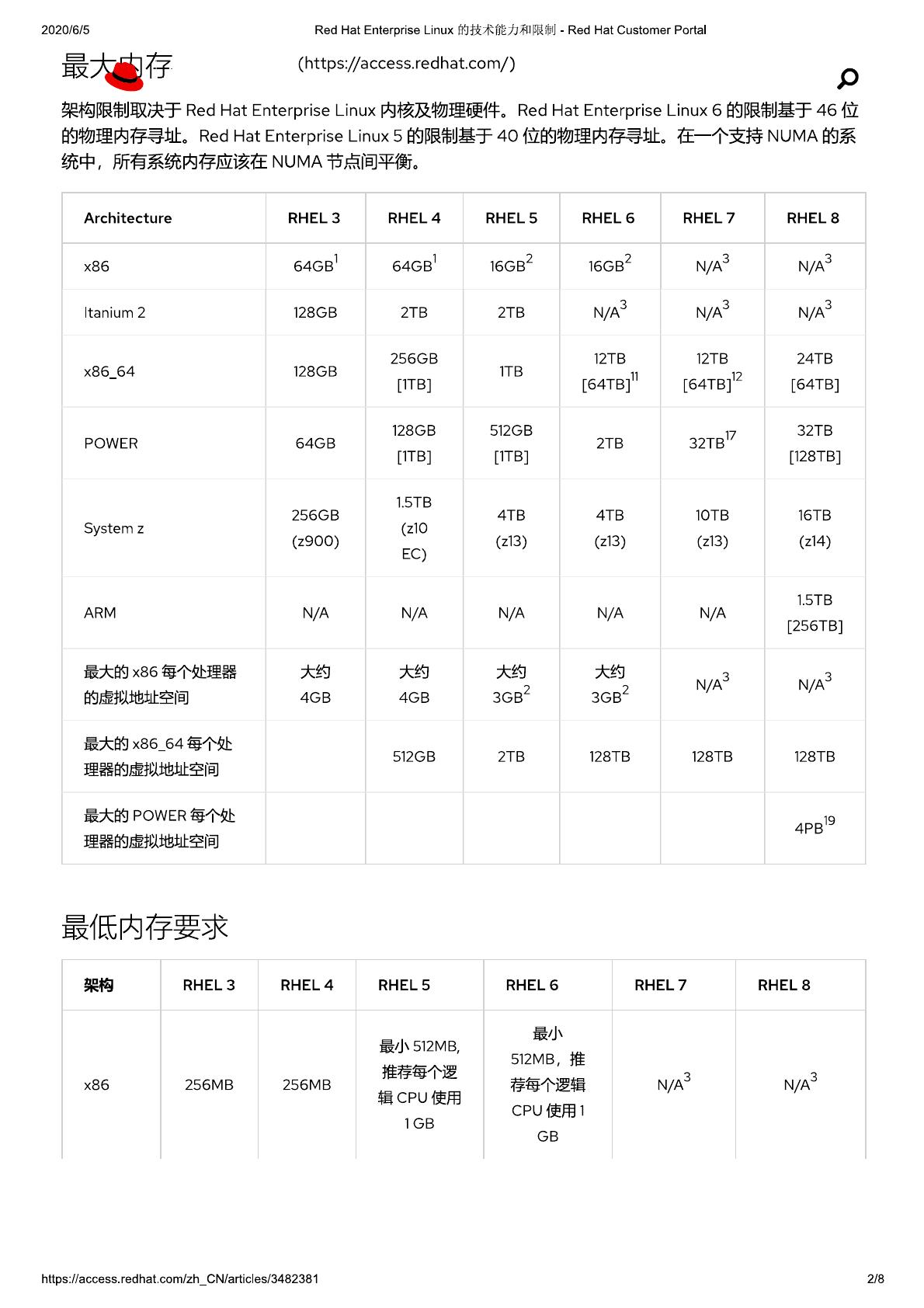 Red Hat Enterprise Linux的技术能力和限制