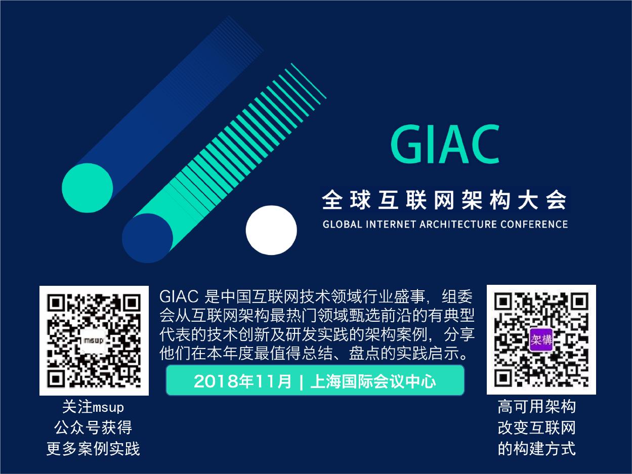 2018年6月1-2日,GIAC 全球互联网架构大会将于深圳华侨城洲际酒店举行!GIAC全球互联网架构大会是由msup和高可用架构技术社区联合举办的面向架构师、技术负责人及高端技术从业人员的技术架构大会。GIAC已确定有腾讯、百度、链家、美团、优酷、去哪儿网、旷视科技、ofo等公司技术专家出席。