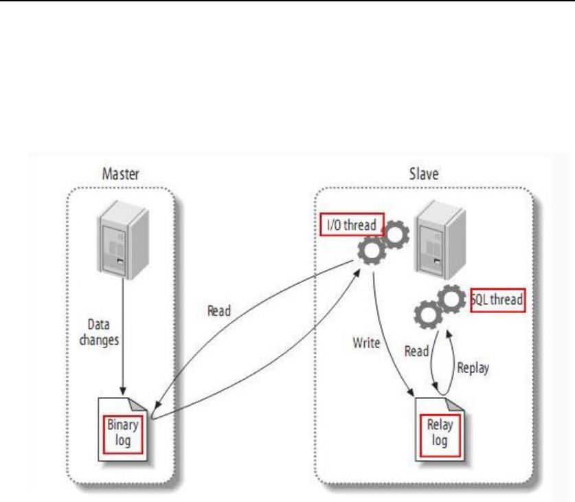 并重放其中的事件而更新 slave 的数据,使其与 master 中的数 据一致。只要该线程与 I/O