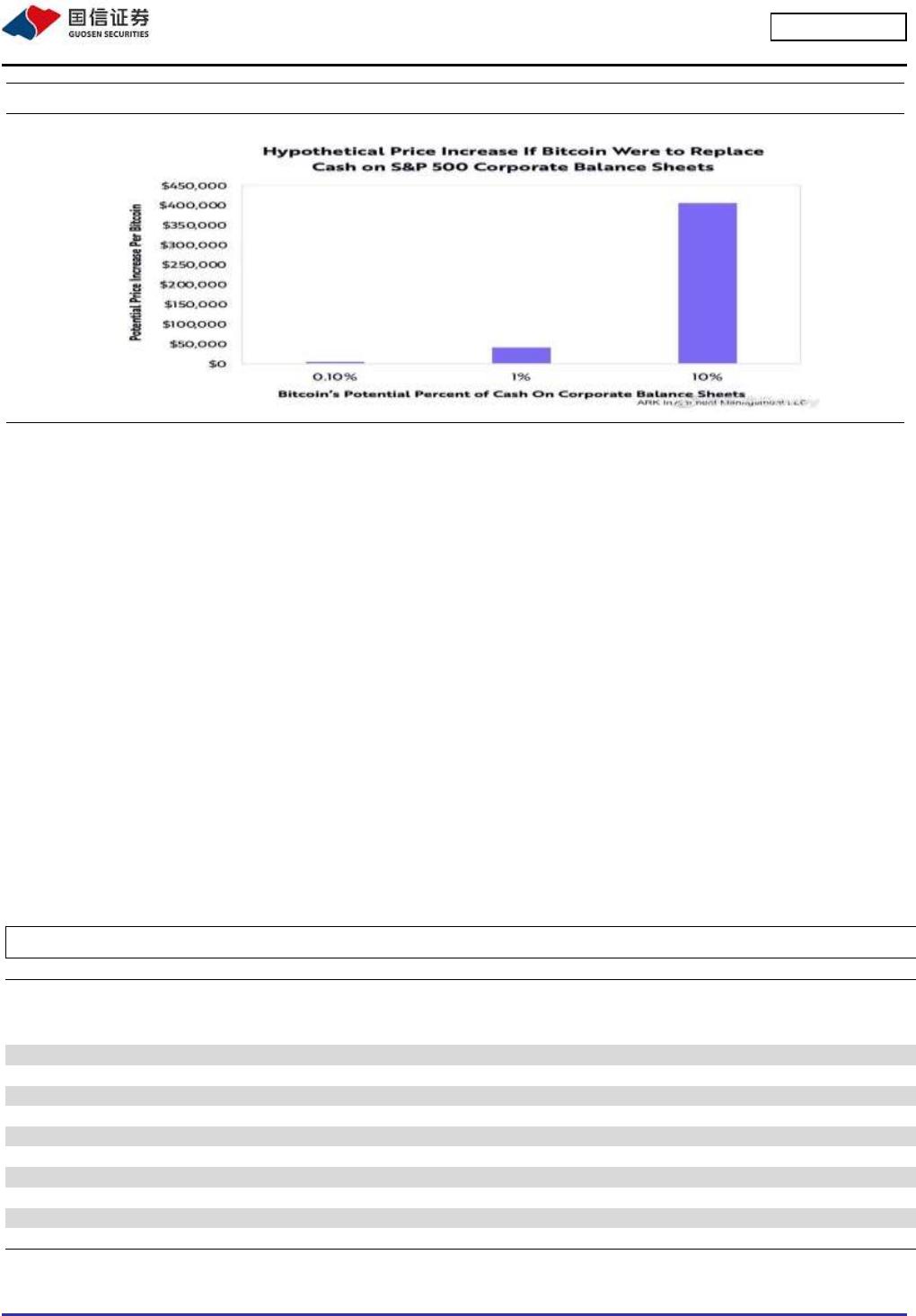 图 1:美国 ARK 基金关于标普 500 企业布局比特币对比特币潜在价格提升的测算