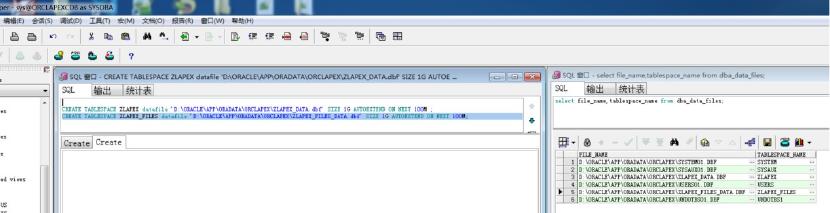 '/u01/oracle/app/oradata/APEXRELEASE/datale/ZLAPEX_DATA.dbf' SIZE 1G