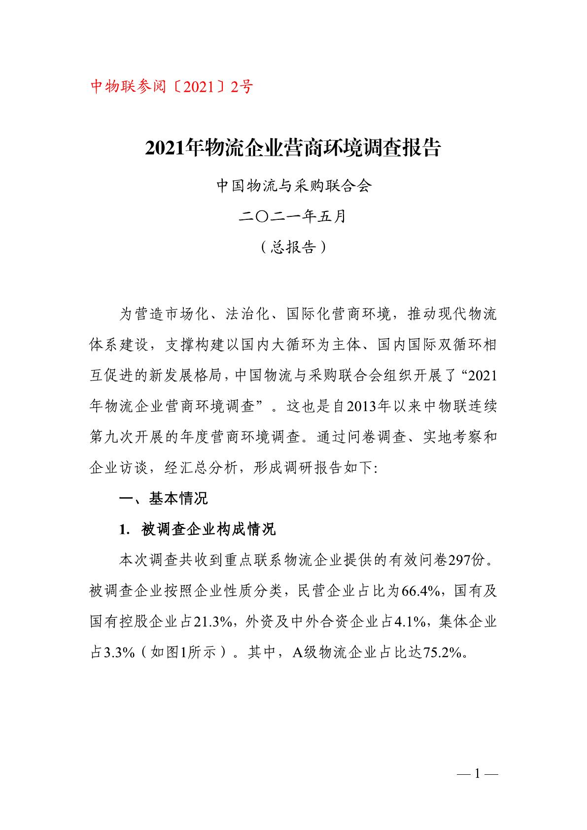 【中国物流与采购联合会】2021年物流企业营商环境调查报告.pdf