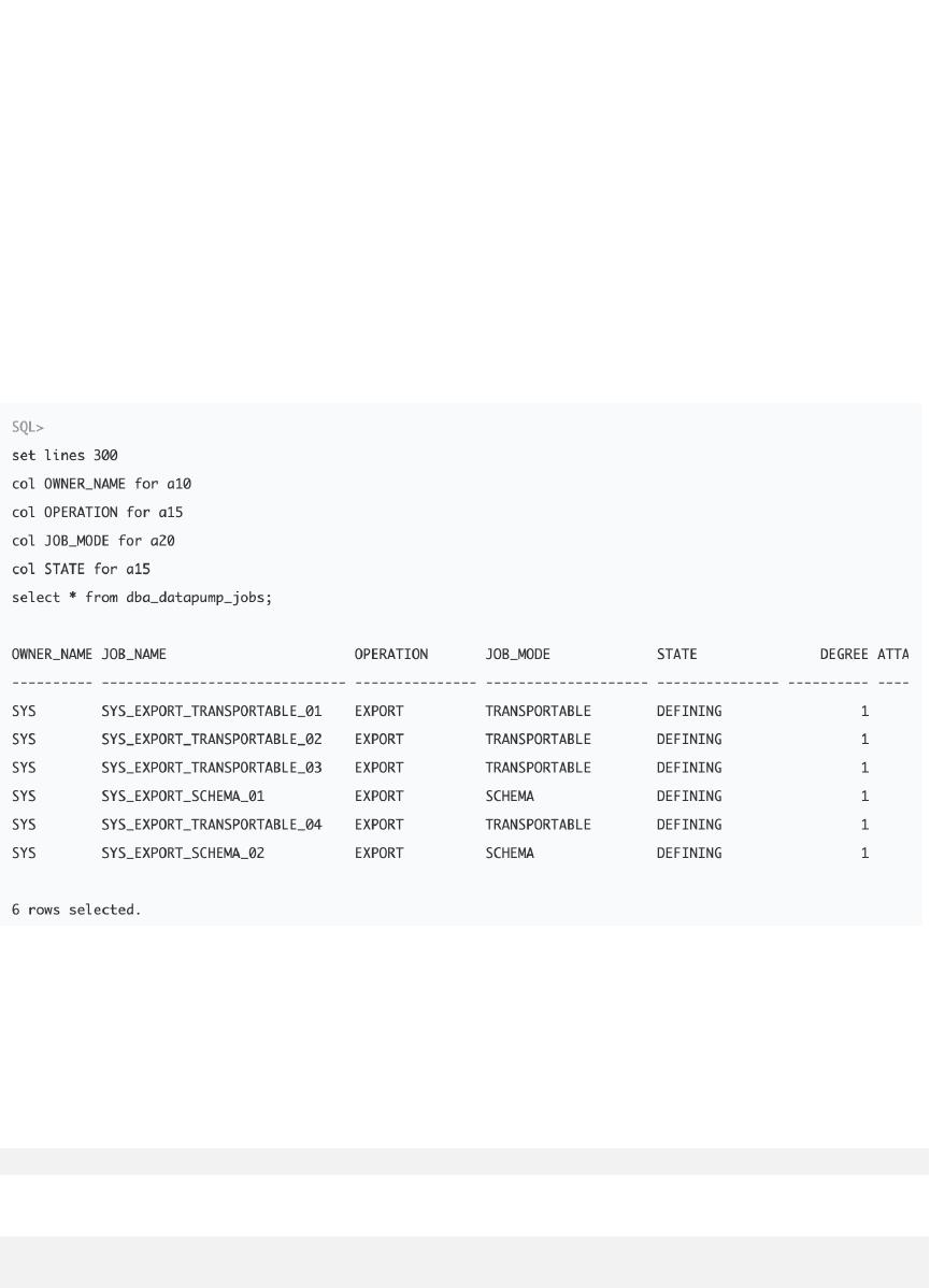 dba_datapump_jobs where STATE='NOT RUNNING';