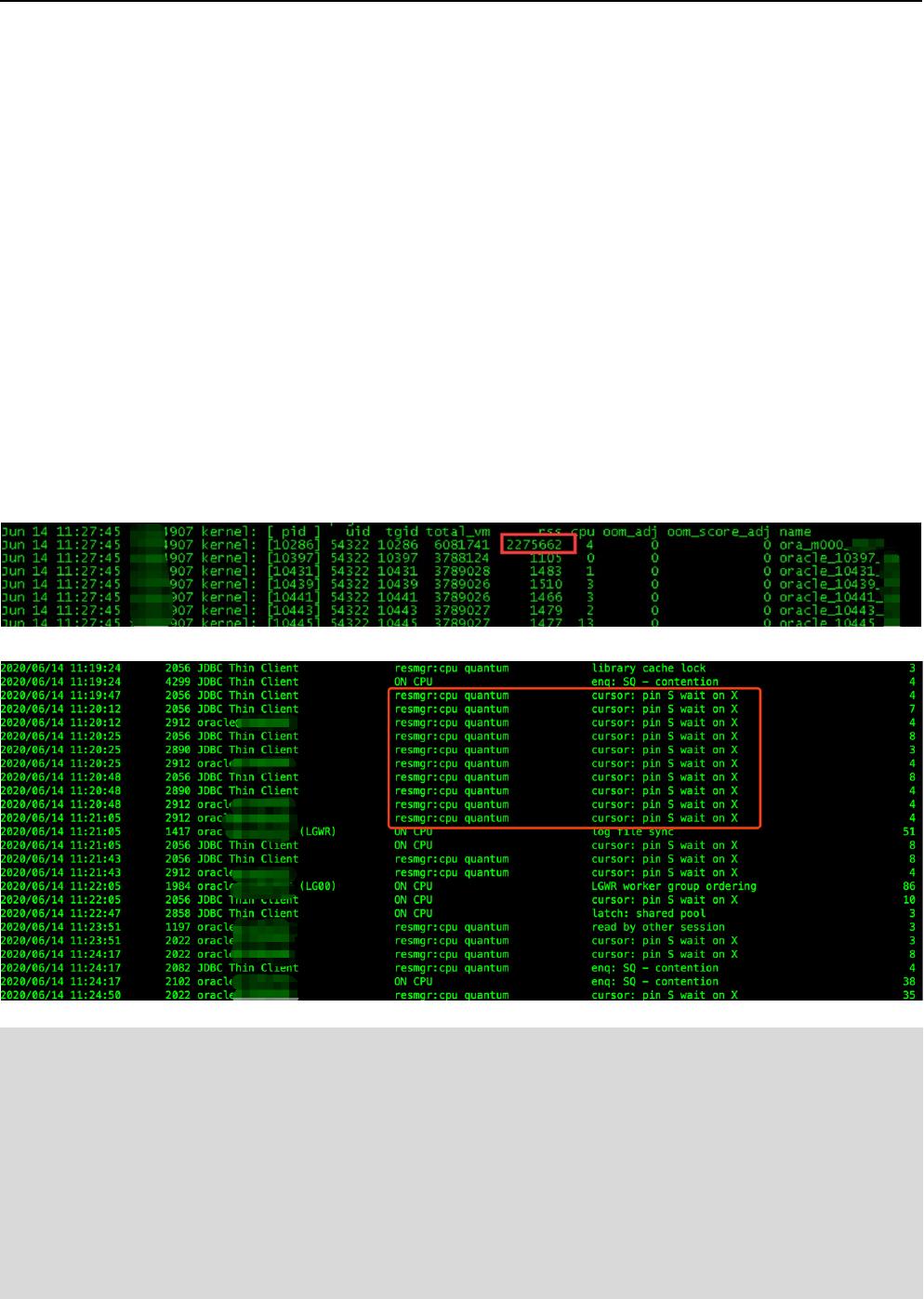 某客户一套版本为 的 数据库,主机内存耗光,使用了交换区,导致 ,触发数据