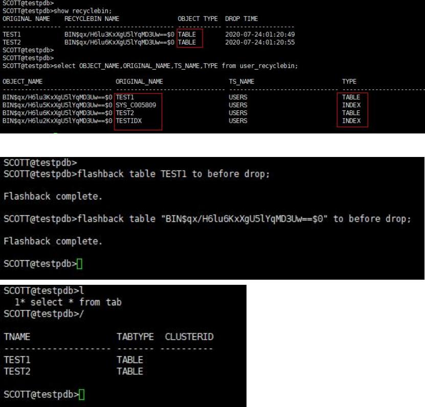 原理:recyclebin(回收站技术)数据库每个用户都有一个回收站,但这个回收站并不实际