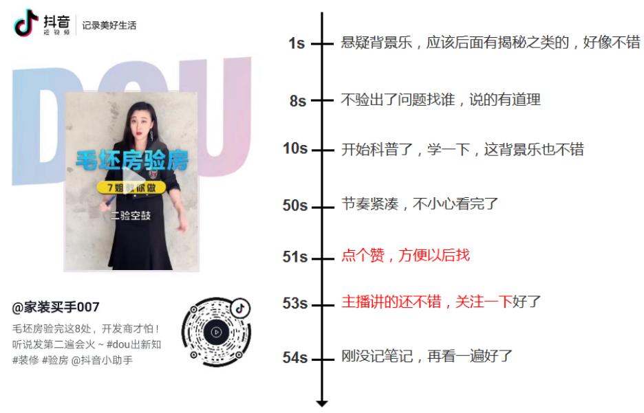 复原用户“看到视频-决定继续看下去-点赞”前后的心理过程。
