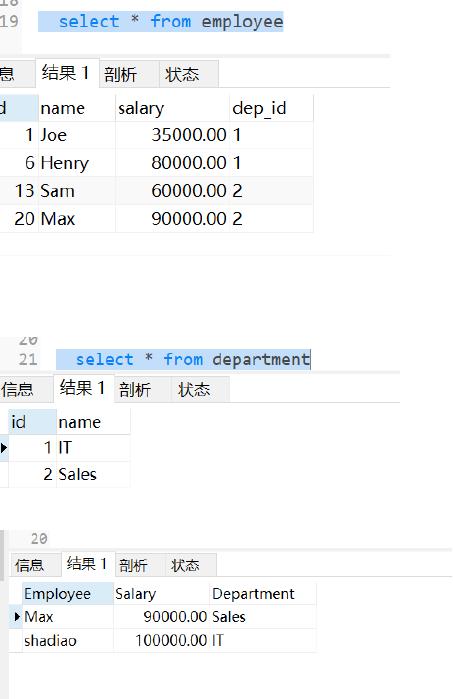 -- (e.dep_id,e.salary) in (SELECT dep_id, MAX( salary ) AS salary FROM employee