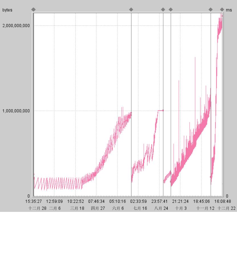 1 ) 分析GC日志native_stderr,JVM heap在正常时间的使用在1000M左右,在故障点内存攀