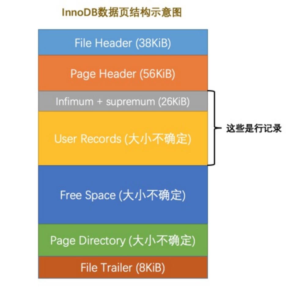 数据⻚代表的这块16KB⼤⼩的存储空间可以被划分为多个部分,不