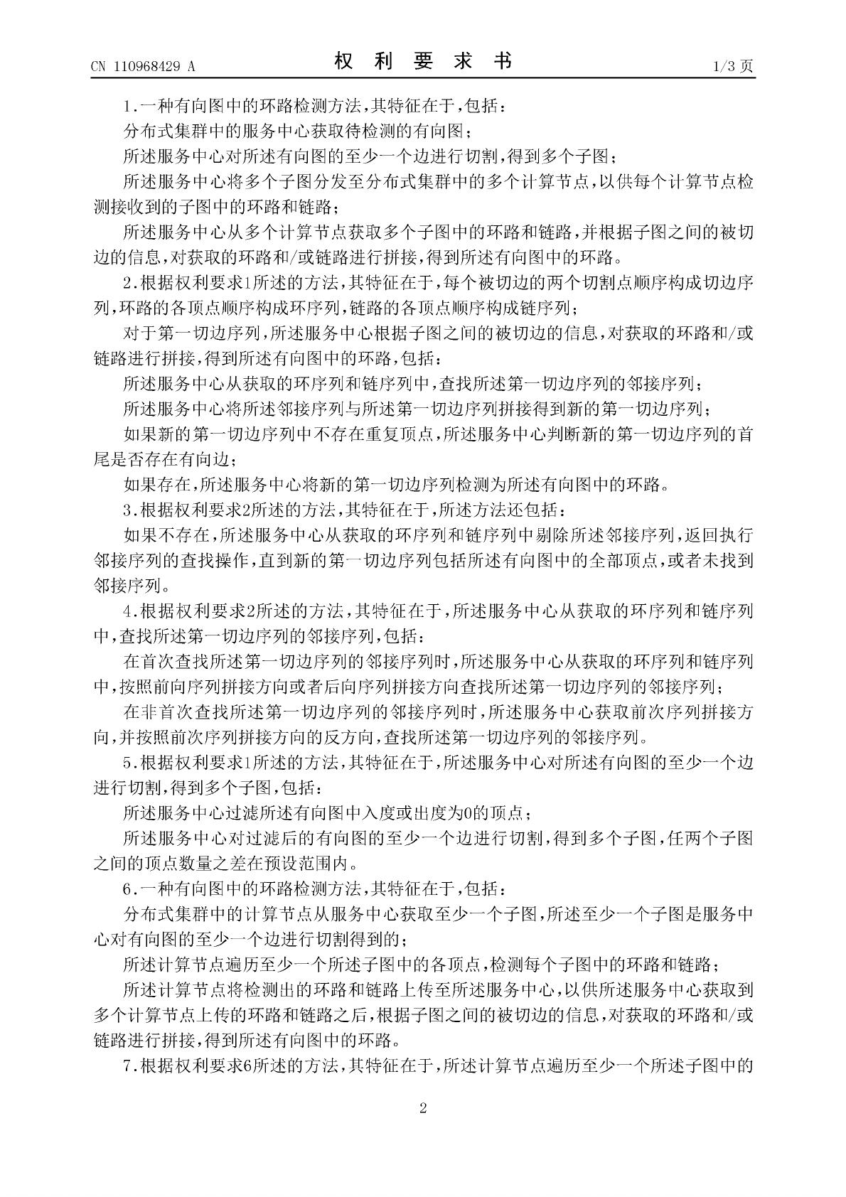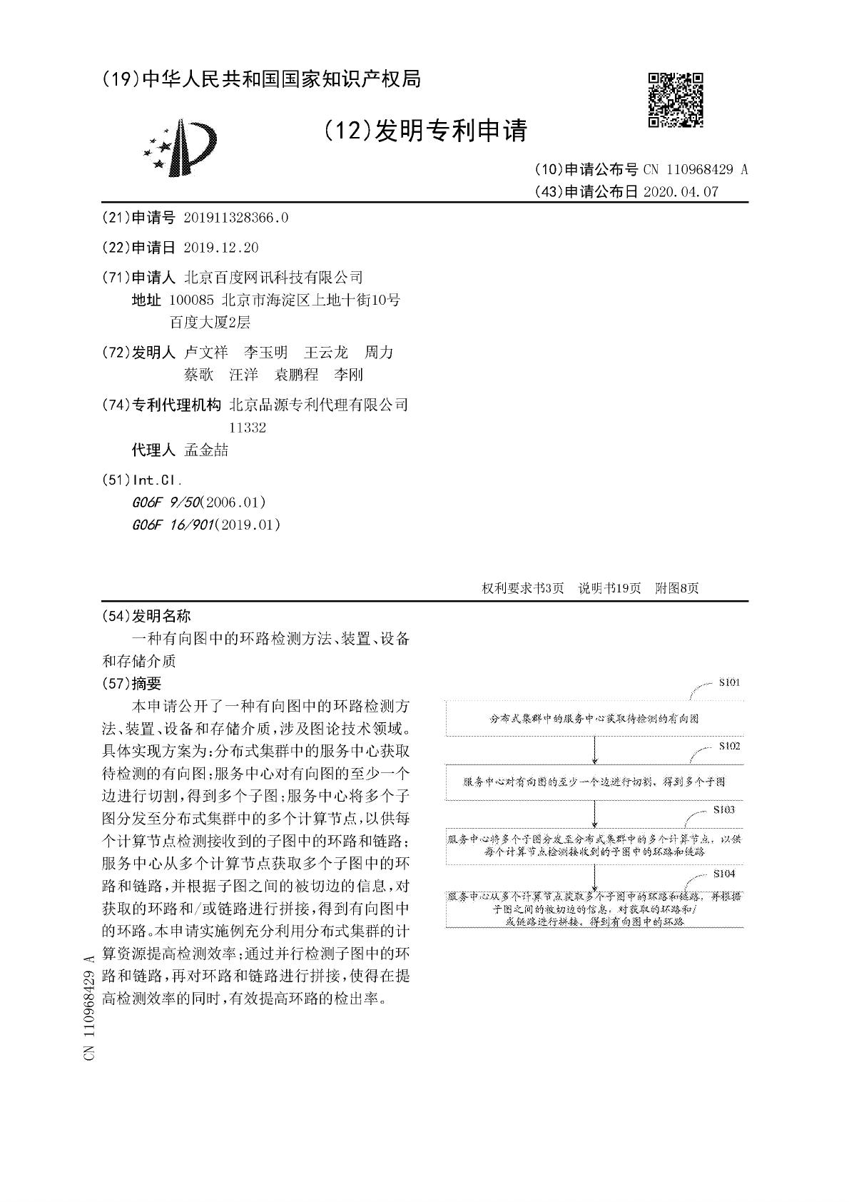 一种有向图中的环路检测方法、装置、设备和存储介质_ CN110968429A_卢文祥;李玉明;王云龙;周力;蔡歌;袁鹏程;李刚_百度.pdf