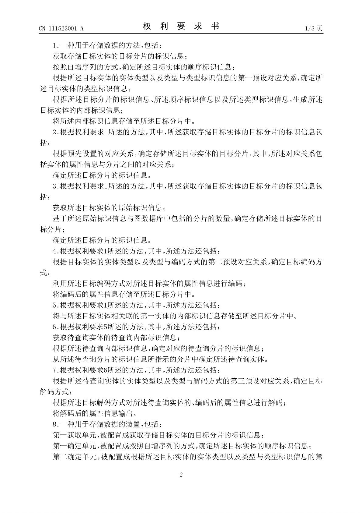 用于存储数据的方法、装置、设备以及存储介质_CN111523001A_王益飞;陈曦;郑杰鹏_百度.pdf