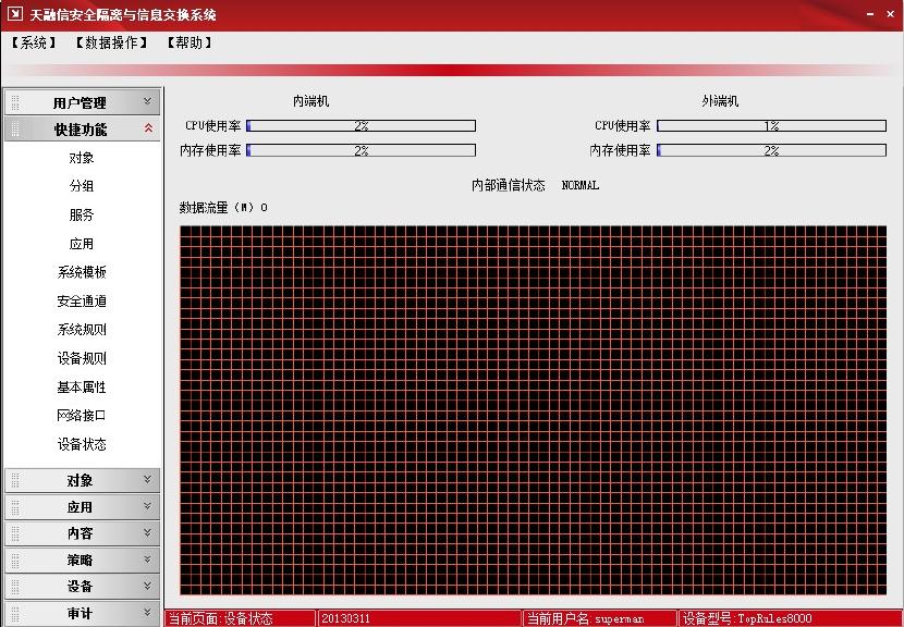 使用 TopRules 控制台程序登录网闸,在快捷功能下拉菜单点击“设备状态”选项。