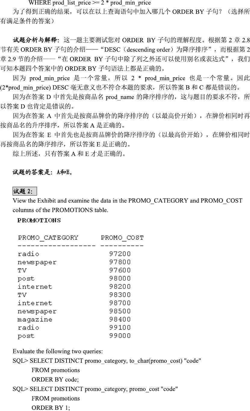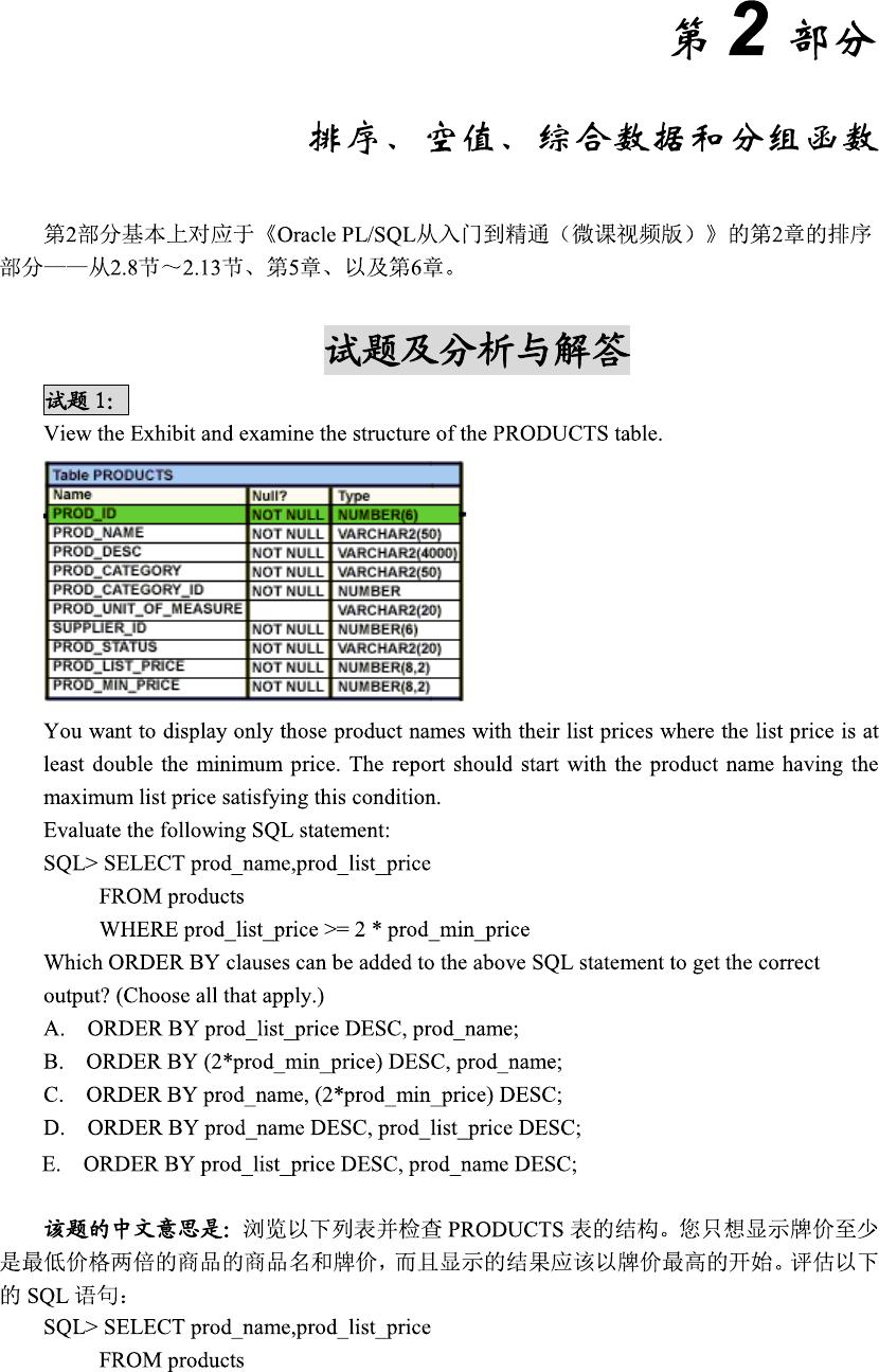 OCA和OCP考试用模拟试题