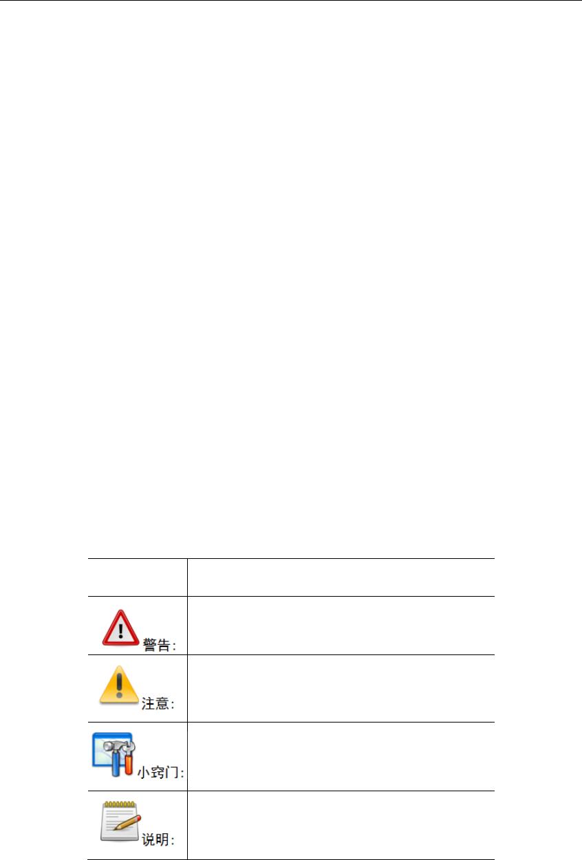 在本文档中可能出现下列标志,它们所代表的含义如下: