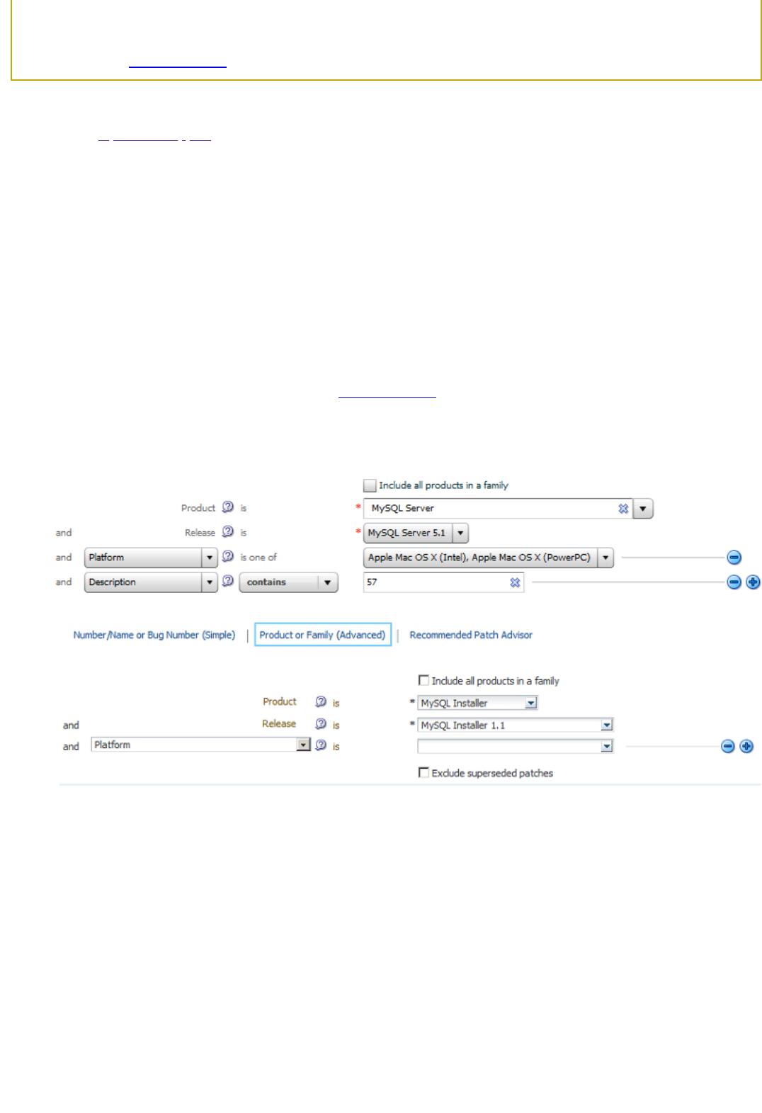 8. These examples search for all MySQL Server 5.1 releases for Mac with 57 in the description, looking for 5.1.57, and