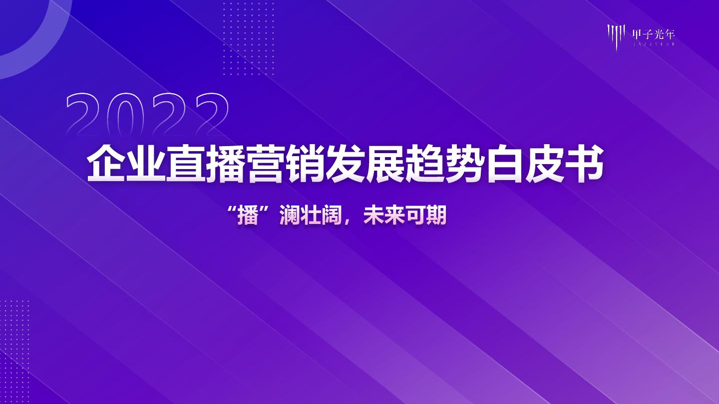 2022企业直播营销发展趋势白皮书:“播”澜壮阔,未来可期-甲子光年.pdf