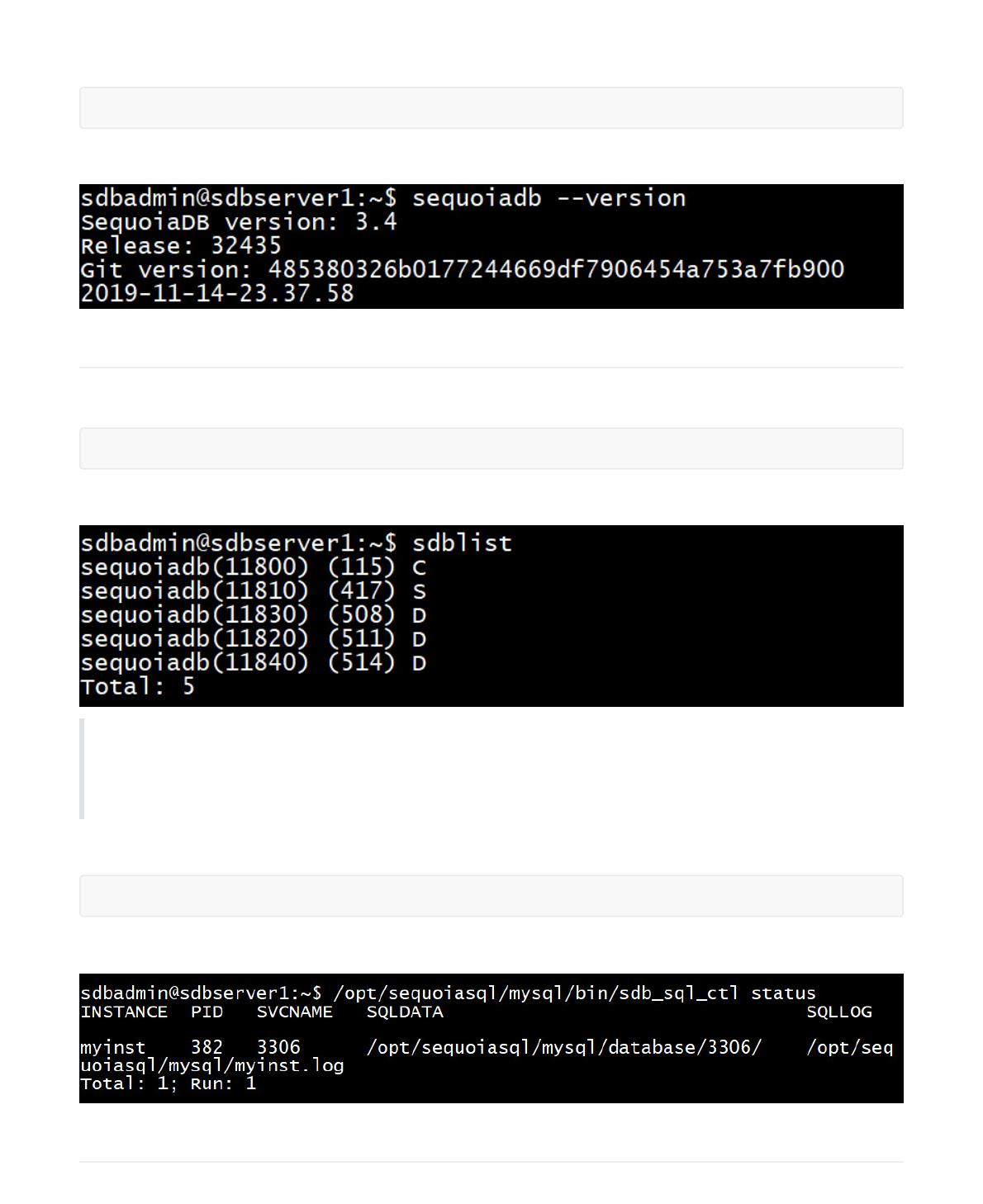 部署 SequoiaDB 巨杉数据库和 SequoiaSQL-MySQL 实例的操作系统用户为 sdbadmin。
