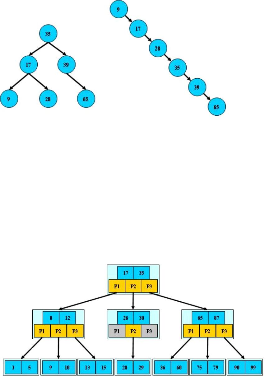 右边也是一个B树,但它的搜索性能已经是线性的了;同样的关键字集合有可能导致不同的树结构