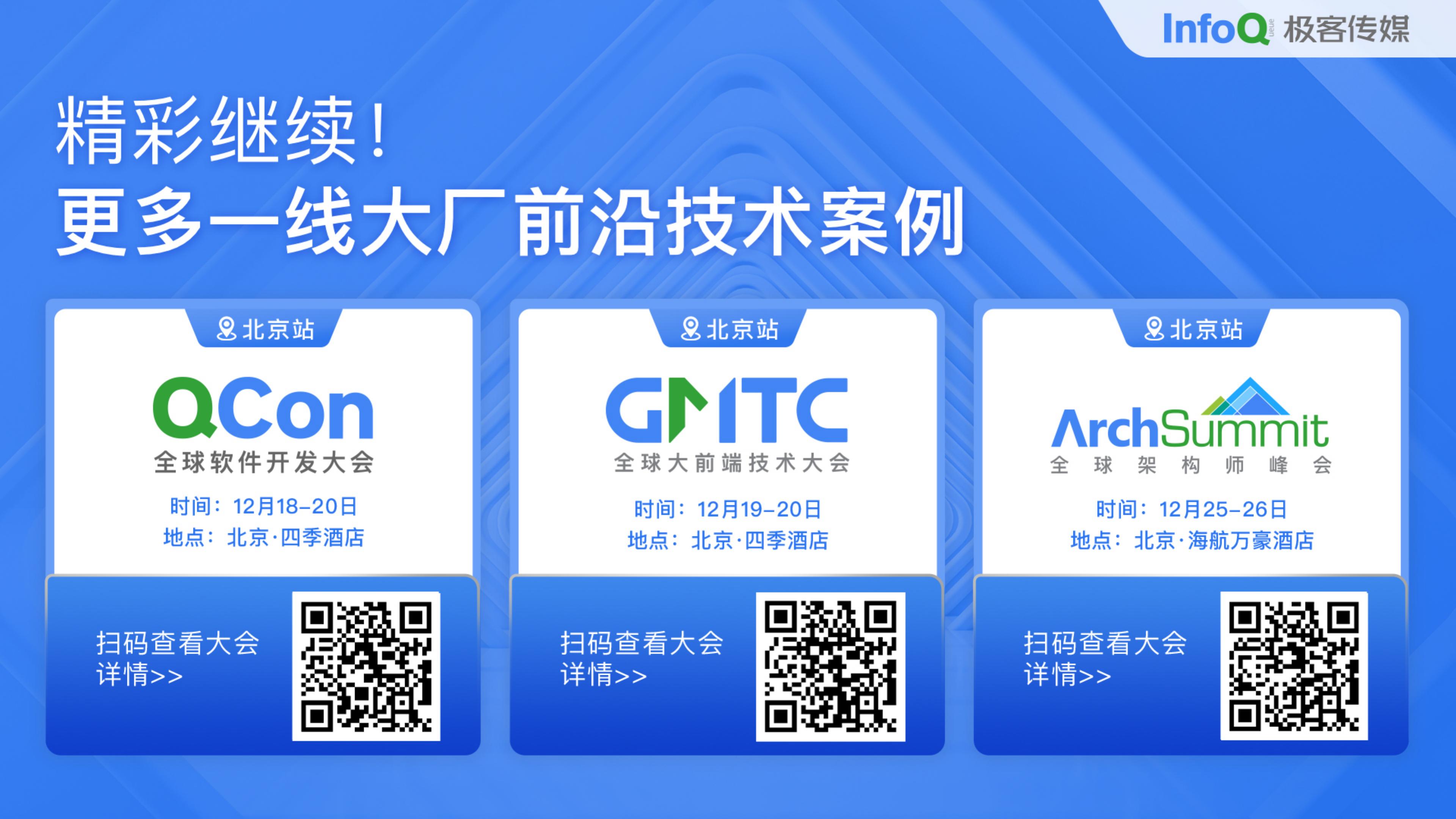 2022年11月25日 - 11月26日,上海。QCon 是由极客邦科技旗下 InfoQ 中国主办的综合性技术盛会,每年在伦敦、北京、纽约、圣保罗、上海、旧金山召开。自2007年3月份开始举办以来,已经有超万名有多年从业经验的技术人员参加过QCon大会。QCon 内容源于实践并面向社区,演讲嘉宾依据热点话题,面向5年以上工作经验的技术团队负责人、架构师、工程总监、开发人员分享技术创新和实践。