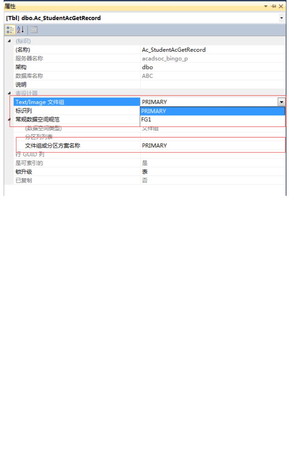 2.然后按F4打开表设计的属性,把下面两个红色框中的部分修改为要移动的文件