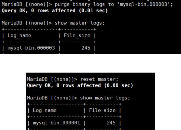 *删除所有的⼆进制⽂件从新计数:reset master;