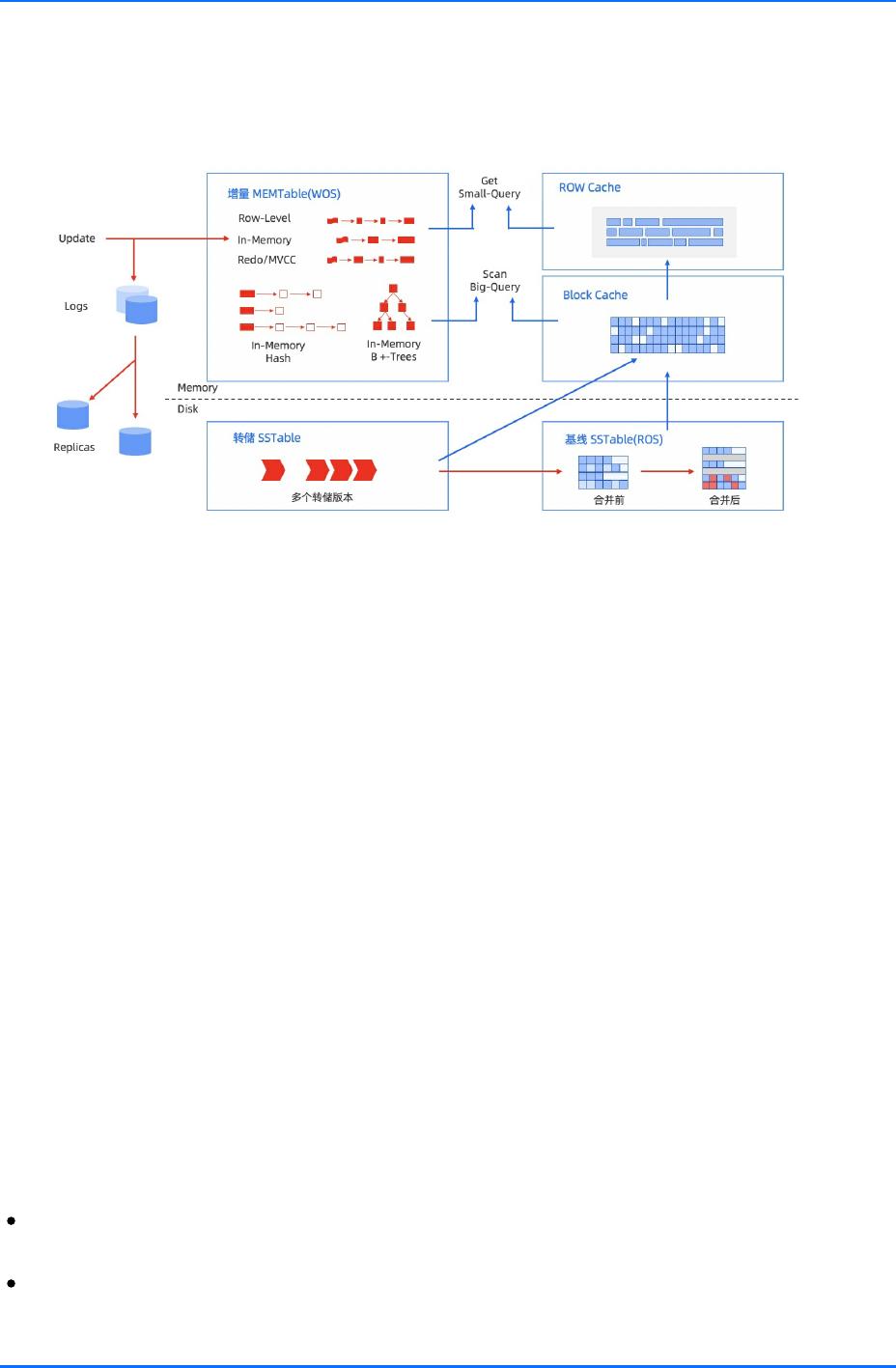 和其他 LSM-tree 数据库一样,OceanBase 数据库也将数据分为内存增量数据(MemTable)和存储静态