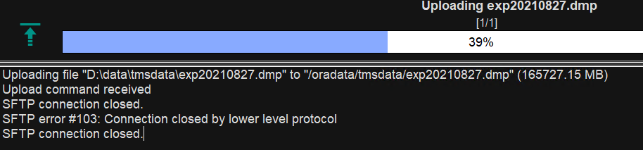 遇到sftp传文件 每次传一半就报SFTP error #103: Connection closed by lower level protoco