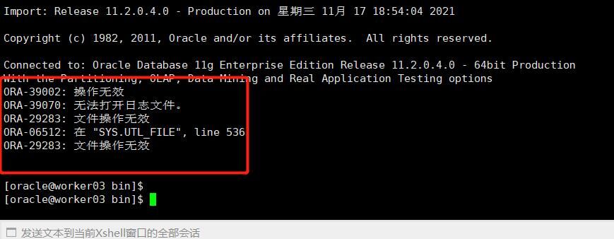 朋友你好,请将完整的expdp语句,备份文件存放位置还有目录的属主属组截图贴出来,方便判断。