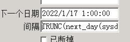 Interval => TRUNC(next_day(sysdate,2))+2/24 --星期一(一周的第二天)