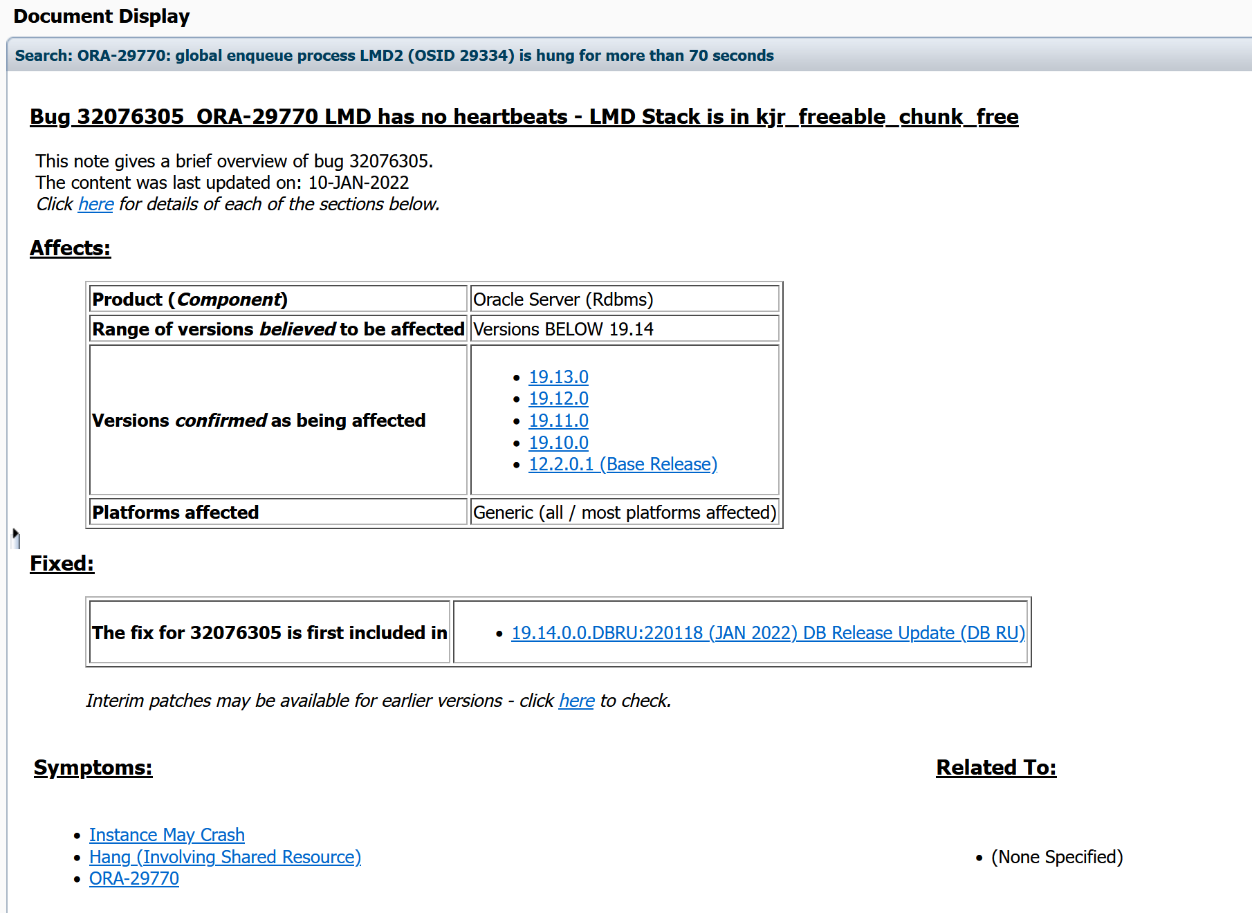 Oracle Database 19c Enterprise Edition Release 19.12.0.0.0,实例发生重启,操作系统是Redhat7.9