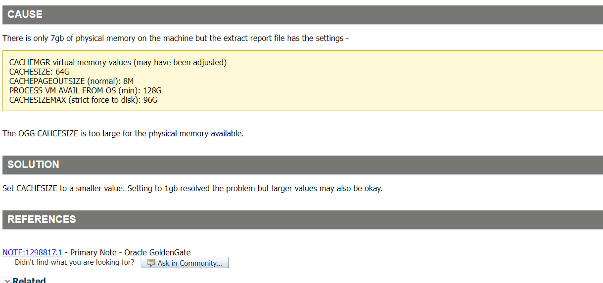 然后OGG进程abend,拉不起来了。重新指定抽取点可以拉起来,但是过一段时间又会abend。这个抽取进程与其他配置完全相同,只有这个挂了。