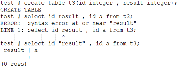 注意:虽然unreserved 的关键字可以用于字段名等,但不能用于列别名。