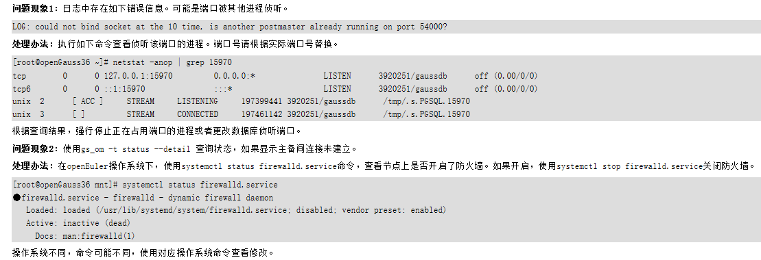 openGauss 启动失败,报网络错误
