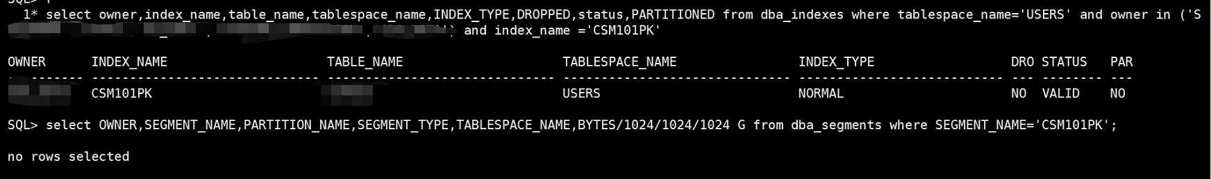 dba_indexes中的某个索引在dba_segments查不到对应信息