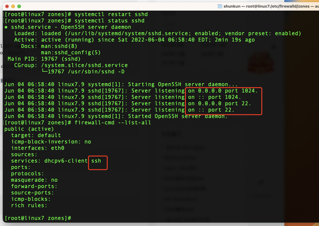 linux 7 修改了ssh新增1024端口,firewalld放行ssh服务,为什么新增的1024端口无法访问? ssh服务只认22端口?1024端口也是使用ssh配置文件,按说也属于ssh服务的一部分