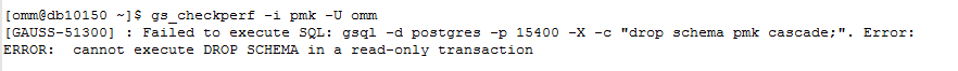 执行gs_checkperf命令也报错ERROR: cannot execute DROP SCHEMA in a read-only transaction