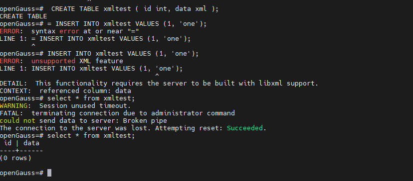 这个是开启的方式啊。 我在未开启的情况下尝试了一下,创建表是没有问题的,只有在插入数据时才能看到不支持xml。我的疑问是是否可以直接查询到能不能支持xml?