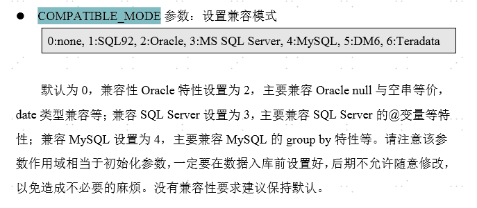 COMPATIBLE_MODE(静态参数,是否兼容其他数据库模式。